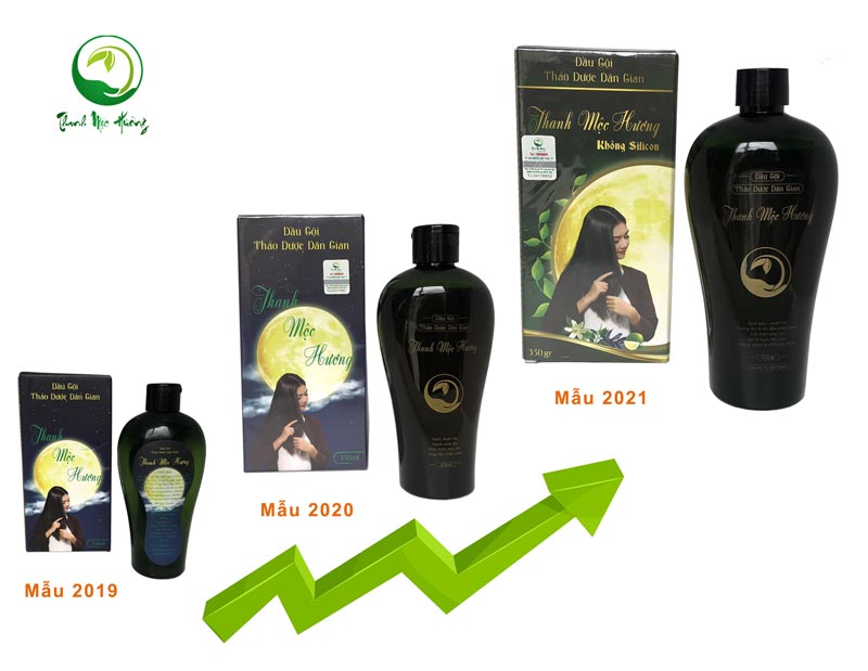 Hiện tại công ty đã cải tiến dầu gội thảo dược Thanh Mộc Hương 3 lần chính mẫu đầu tiên từ 2018 tới 2019, mẫu 2020 và hiện tại 11/2020 tới 2021, với thành phần và kiểu dáng khác nhau đôi chút, sau đây bạn có thể xem để biết thêm